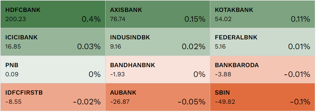 HDFC Bank, Axis Bank, and Kotak Mahindra Bank were the top three contributors to the Nifty 50 on August 12.