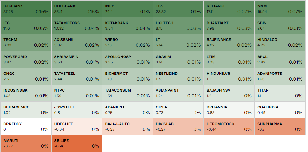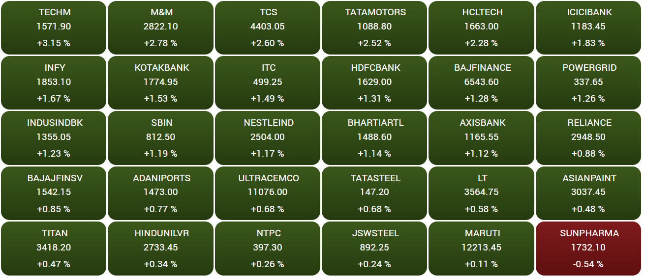 Tech Mahindra, M&M, TCS, Tata Motors, and HCLTech were the top contributors pulling the index higher.