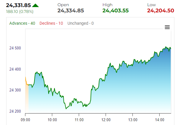 As of 3: 15 PM on August 16, 2024, the Bombay Stock Exchange (BSE) saw 2,474 stocks advancing, while 1,415 declined, and 120 remained unchanged. A total of 4,009 stocks were traded. Notably, 195 stocks reached a 52-week high, and 43 hit a 52-week low. Additionally, 304 stocks were trading at the upper circuit limit, while 263 stocks hit the lower circuit.