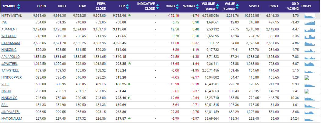 NALCO, Jindal Steel, SAIL, Hindalco, and NMDC were the major losers to see deep cuts in the Nifty Metal on October 15.