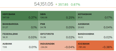 In today’s trading session, Canara Bank led the gains among Nifty PSU Bank stocks, rising by 3.26%. Indian Bank followed closely with an increase of 3.25%, while Bank of Maharashtra and Bank of Baroda both saw gains of 2.59%. Central Bank of India rose by 2.51%, and State Bank of India (SBI) increased by 2.16%.