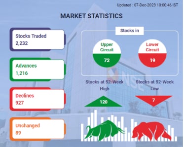 Paytm shares plunge 20%; Brokerages raise concerns over decision to slow the postpaid loans“There are three factors that can keep the market resilient. One, steady decline in U.S. bond yields (10-year around 4.1% now) has created a global environment favourable for equities. Two, India’s GDP growth rate is improving and inflation is coming down. The steadily declining crude price is another big positive. Three, political uncertainty surrounding the 2024 General elections appears to be out of the way after the crucial state election results. These factors have emboldened the bulls and bears have been forced to cover their short positions. In spite of these favourable factors, there will be dips in the market triggered by profit booking at higher levels,” said V K Vijayakumar, Chief Investment Strategist at Geojit Financial Services.