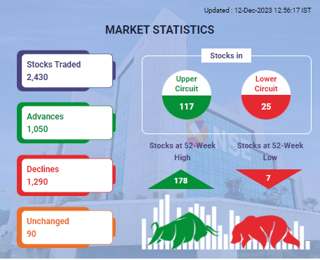 "The fundamental factor supporting the rally which has taken the market to record highs is the series of positive news: Q3 GDP growth rate of 7.6%, CPI inflation falling to 4.87%, Manufacturing PMI rising to 56, Brent crude declining to $76 and FPIs turning buyers aided by correction in US 10-year bond yield to 4.23%. These positive economic news is being strengthened by expectations of political stability after the 2024 General elections. Since these positive developments are mostly in the price, the market is likely to wait for incoming crucial data before making further moves. Therefore, the market will be keenly watching the inflation print from the US tonight and the Fed’s message on Wednesday. An important trend in the market is the accumulation happening in the fairly-priced segments like PSU banks and some leading private banks," said V K Vijayakumar, Chief Investment Strategist at Geojit Financial Services.