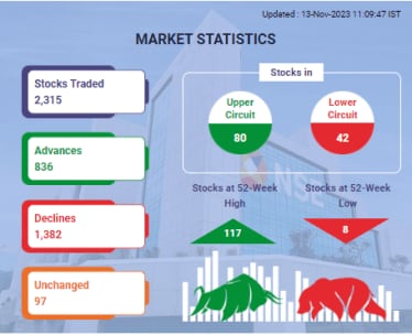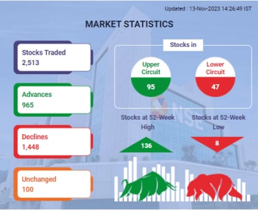 The NSE Nifty 50 dropped 0.42% to settle at 19,443.55, while the BSE Sensex dropped 0.50% to 64,933.87.