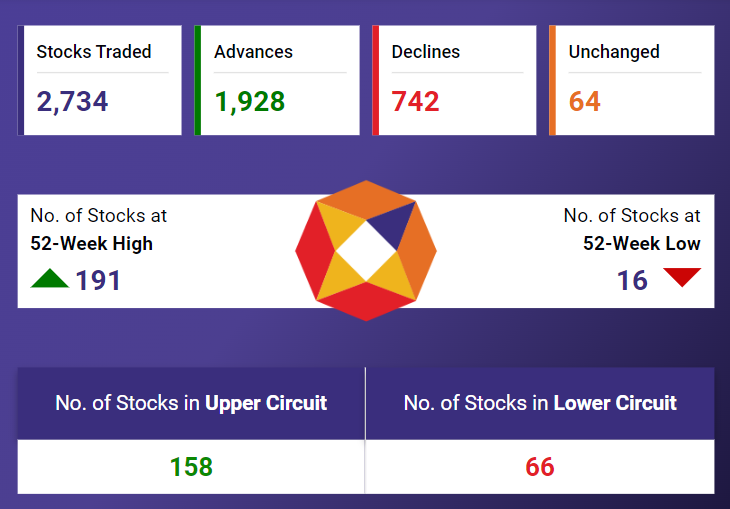The NSE Nifty 50 gained 131.35 points or 0.55% to settle at 24,141.95, while the BSE Sensex jumped 443.46 points or 0.56% to 79,476.19.
