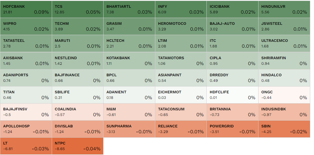 Tech Mahindra, Wipro, Bajaj Finance, Grasim, and UltraTech Cement are the top gainers on the NSE Nifty 5o index whereas the top laggards include NTPC, Eicher Motors, Dr Reddy's Lab, State Bank Of India, and Apollo Hospital's.