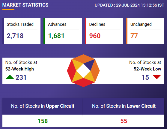 The NSE Nifty 50 was up 144 points or 0.58% at 24,978.45, while the BSE Sensex was up 511 points or 0.63% at 81,843.27.