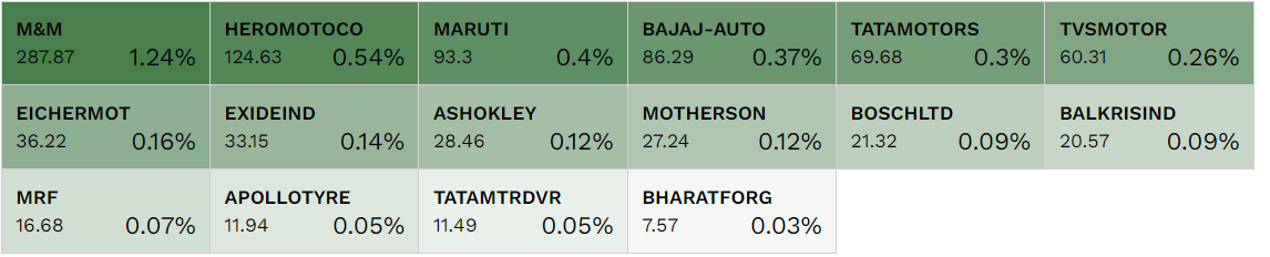 All 15 constituents of the index traded in the green today, reflecting widespread bullish sentiment in the sector. Leading the charge, stocks like Dabur, Colgate-Palmolive (India), Godrej Consumer Products, and Marico posted gains between 8% and 9%. Hindustan Unilever (HUL) shares surged over 9%, marking HUL's biggest single-day gain since April 2020.