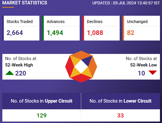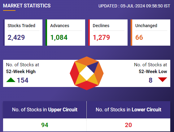 Cipla, Divi's Laboratories, Bajaj Auto, Hindalco, and Wipro were the top gainers in the Nifty 50. While HDFC Bank, Tata Steel, Titan, M&M, and Tata Consultancy Services were the major losers in the Nifty 50 on July 05.