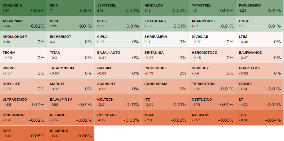 Coal India, Hindalco Industries, BPCL, Apollo Hospitals, and Tata Steel are the top gainers on NSE Nifty 50 index whereas the top laggards include Nestle India, Mahindra & Mahindra, Axis Bank, SBI Life Insurance, Bajaj FinServ.