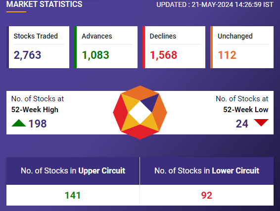 Foreign institutional investors (FII) sold shares net worth Rs 92.95 crore. Similarly, domestic institutional investors (DII) sold shares net worth Rs 152.87 crore on May 18, 2024, according to the provisional data available on the NSE.