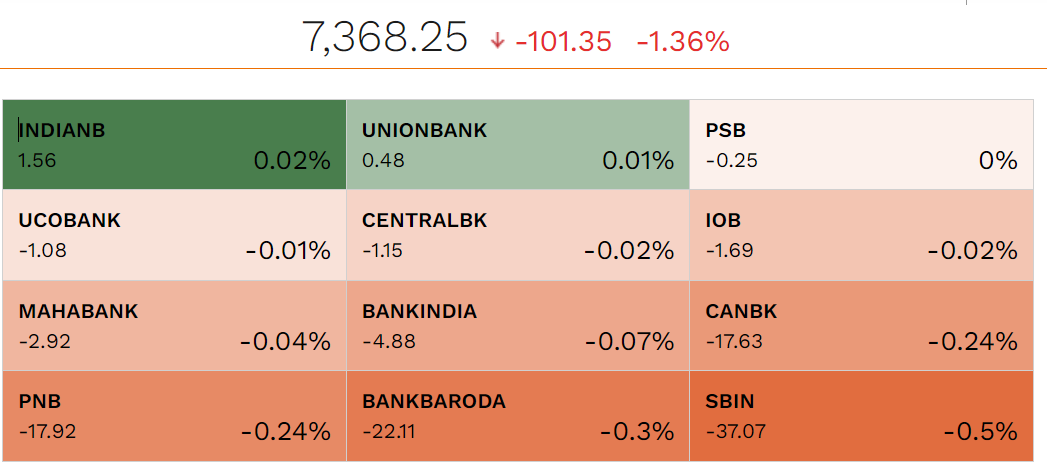 The NSE Nifty 50 closed 0.47% lower at 23,455.85, while the BSE Sensex closed 0.53% lower at 77,067.49.
