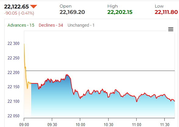 Sharing insights on the technical outlook of Nifty, Rupak De, Senior Technical Analyst at LKP Securities, remarked that despite opening higher, Nifty couldn't maintain the morning momentum, resulting in a close at the day's low due to profit booking. Nevertheless, the short-term sentiment remained positive, as the index concluded above the pivotal resistance level of 22,200, with the next resistance anticipated at 22,400. The short-term support is established at 21,900. As long as Nifty sustains levels above 21,900, there is a likelihood that the index will be considered a viable option for buying during dips.