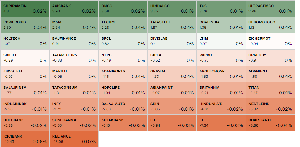 Shriram Finance, TCS, Bharti Airtel, Axis Bank, and Divis Labs are the top gainers on NSE Nifty 50 index whereas the top laggards include Nestle India, Bajaj-Auto, HDFC Life Insurance, Kotak Mahindra Bank, and Dr Reddy's Labs.