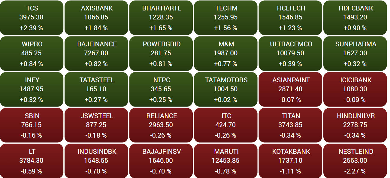 ONGC, Ultratech Cement, Tech Mahindra, Hindalco, and Divi's Laboratories were the top gainers in the Nifty 50. While Bharti Airtel, Apollo Hospitals, Nestle India, Britannia, and Bajaj Auto were the key laggards in the Nifty 50 on April 03.