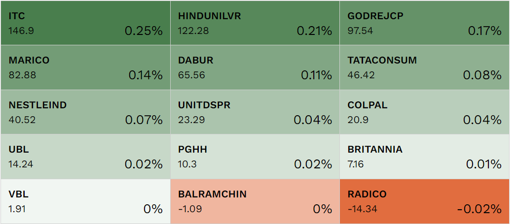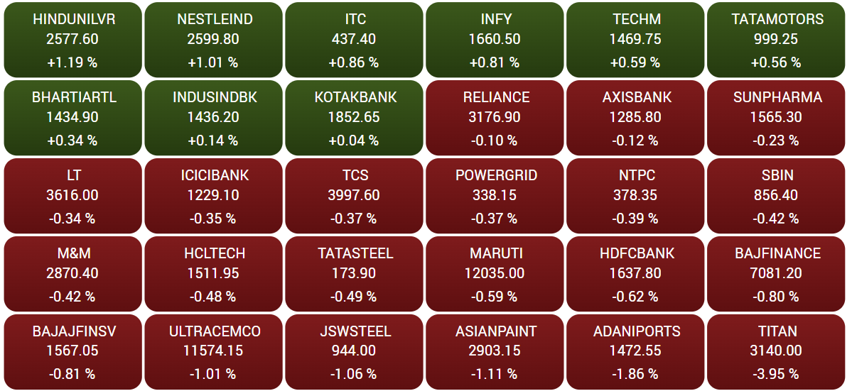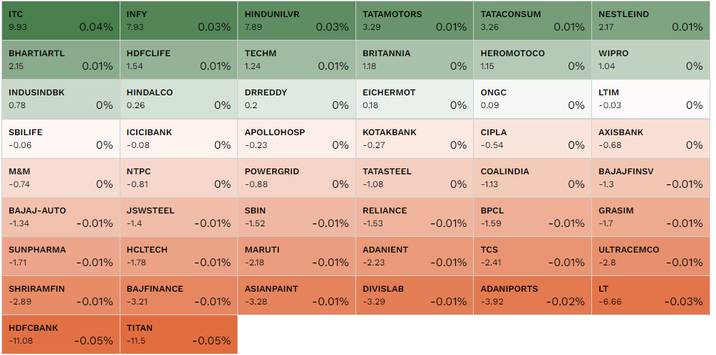 ONGC, ITC, Hindustan Unilever, Nestle India, and Wipro are the top gainers on NSE Nifty 50 index whereas the top laggards include Titan Company, Divis Lab, Shriram Finance, BPCL and Adani Enterprises.