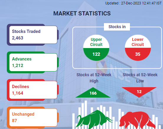 Nifty opens higher by 0.26% at 21,497.65, whereas the BSE Sensex opens higher by 0.22% at 71,492.03.