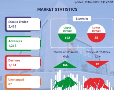 Share Market News Today | Sensex, Nifty, Share Prices Highlights: The benchmark equity indices ended Wednesday’s trading session in the positive territory. The NSE Nifty 50 gained 213.40 points or 1% to settle at 21,654.75, while the BSE Sensex soared 701.63 points or 0.98% to 72,038.43. The broader indices ended in green, with gain led by Largecap and Smallcap stocks. Bank Nifty index ended higher by 557.35 points or 1.17% to settle at 48,282.20. PSU banks and Auto stocks outperformed where Oil & Gas stock shed. Ultra Tech Cement, Hindalco Industries, Bajaj Auto, JSW Steel, and Tata Motors were the top gainers on the NSE Nifty 50, while the laggards includes ONGC, NTPC, Adani Enterprises, Britannia Industries, and UPL. The Indian Volatility Index (India VIX) closed up by 5.99 %.