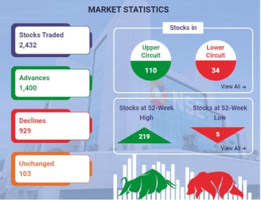 The NSE Nifty 50 hits a fresh 52-week high of 21,861.45 points, up more than 200 points or over 1%.