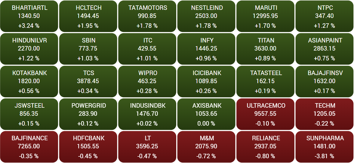 Grasim Industries, Bharti Airtel, HCL Technologies, Nestle India, and Hindustan Unilever were the top gainers in the Nifty 50. While Sun Pharma, BPCL, HDFC Life Insurance, Hindalco, and Reliance Industries were the key laggards in the Nifty 50 on April 23.