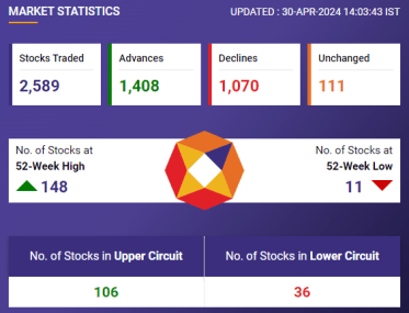 Share Market News Today | Sensex, Nifty, Share Prices Highlights: The benchmark equity indices closed in positive territory on April 30. The NSE Nifty 50 lost 39 points or 0.17% to finish the day’s trading at 22,605, while the BSE Sensex pulled back 189 points or 0.25% to close at 74,482.78. Bucking the trend, Nifty Midcap closed in green up 33.75 points or 0.07% to settle at 50,868.20.