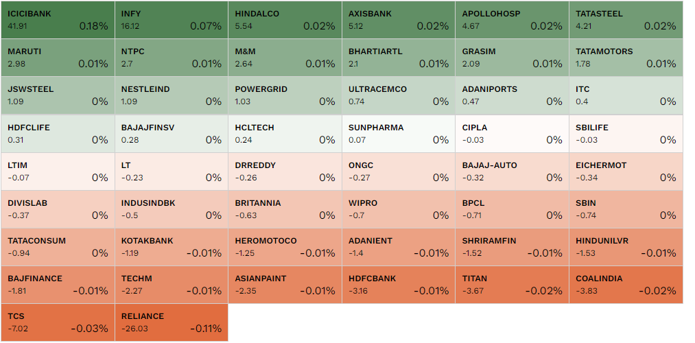 Apollo Hospitals, Hindalco, ICICI Bank, Eicher Motors, and Infosys were the top gainers in the Nifty 50. While Titan, Coal India, Hero MotoCorp, Reliance, and Asian Paints were the major losers in the Nifty 50 on April 09.