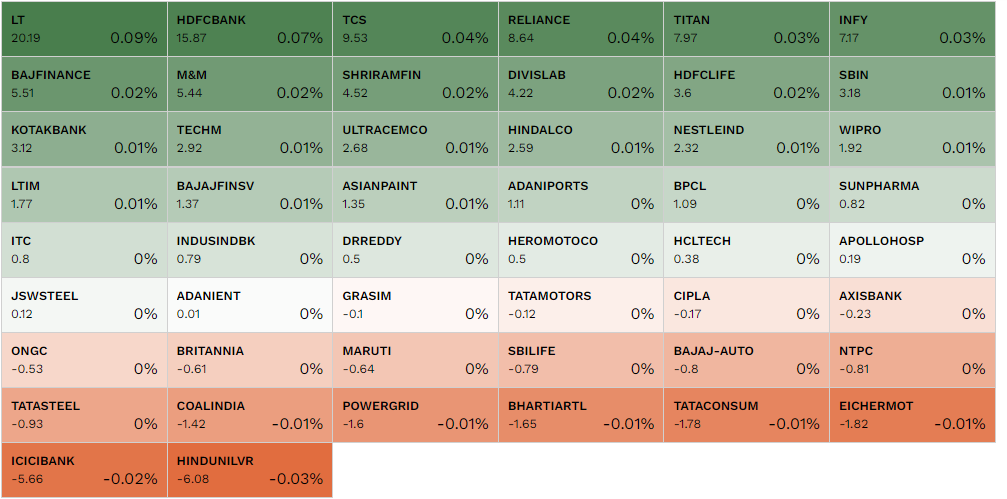 Nestle India, Divis Labs, HDFC Life Insurance, SBI Life Insurance, and Shriram transport finance are the top gainers on NSE Nifty 50 index whereas the top laggards include Hindustan Unilever, Britannia Industries, Tata Consumers Products, and ICICI Bank.