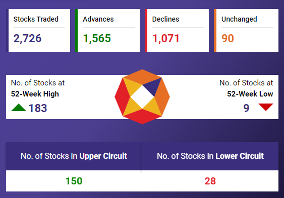 The NSE Nifty 50 closed 0.33% higher at 23,399.95, while the BSE Sensex closed 0.29% higher at 76,827.11.