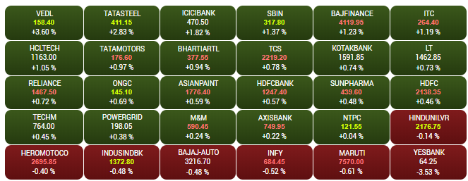 The headline indices Sensex and Nifty opened higher on Monday, after PM Modi hinted at further tax reforms to bolster investments. The Sensex was up about 216 points to 40,381, while the Nifty was trading near the crucial 12,000-mark. India is committed to further improving its people-friendly tax regime, Prime Minister Narendra Modi said during the ASEAN summit, as Asia’s third-largest economy seeks to attract more overseas investment to spur growth. A look at LIVE Sensex heatmap.
