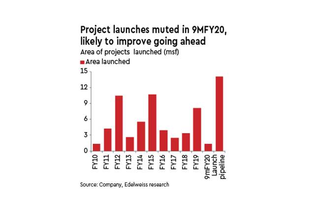 We believe these concerns are likely to be addressed sooner rather than later with sales and cash flows likely to improve—the launch pipeline stands at a robust ~14msf for the next five–six quarters (compared with ~1.4msf in 9MFY20). Cash flow deterioration is also due to temporary cyclical factors such as: (i) weak mobilisation advances in contracting business; (ii) stage of construction; and (iii) customer advances in the realty segment.