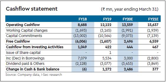 SRF has announced capex of Rs 4.24 bn for integrated manufacturing plant of Polytetrafluoroethylene (PTFE) along with R-22. The capacity expected is 5,000mtpa. The requirement of R-22 is almost 2.1x per kg of PTFE. SRF is increasing its R22 capacity from the present 12,500mt to 25,000mt which should suffice its need of R-22 for feedstock in manufacturing PTFE. SRF has enough chloroform capacity for manufacturing R-22 at Dahej, thanks to the chloromethane plant commissioned in FY18.