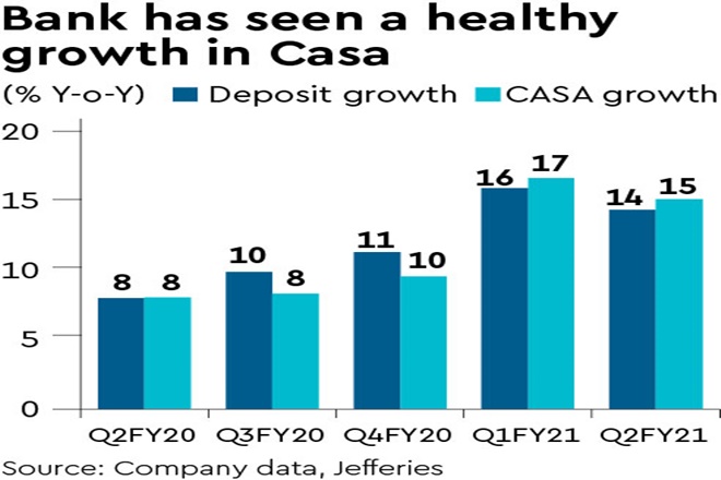 Strong deposit franchise will aid growth: SBI benefits from a strong deposit franchise that will support market share gains, based on its low funding costs. During Q2, its Casa deposits grew by 15% y-o-y with Casa ratio at 44% of deposits. Lower funding costs helps to offer lower lending rates vs. even the larger private banks — this can help gain share in the better quality corporate loans. During Q2, NII grew by 15% y-o-y led by asset growth of 13% (loans up 6%) and NIM expansion of 20bps. NII growth would have been lower by 1% if the bank had reversed income on standstill loans, alike most peers.
