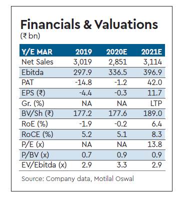 Valuation and view: Over the last three years, JLR has suffered from an adverse product/market mix and higher capex, resulting in negative FCFF over FY18-20. JLR has been focused on cutting capex/cost, benefits of which have started to reflect now. Finally, the mix is normalising with a recovery in LR and China. On the other hand, India business appears to have bottomed out in Q2FY20, although a full-blown recovery may be a few quarters away. Hence, we had recently upgraded the stock to Buy as it offers a favourable risk-reward. Our target price stands at ~Rs 195.