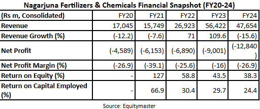 From FY20 to FY24, the company achieved a CAGR degrowth of 19.7% in sales, while it’s still a loss making company.