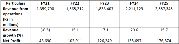 From FY21 to FY25, its revenue registered a CAGR of around 12%, while profit after tax grew at a CAGR of 11.7%.