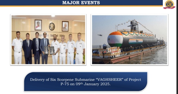 On 9 January 2025, MDL handed over INS Vaghsheer, the sixth and final Scorpene-classsubmarine under Project-75, completing the series of Kalvari-class boats built in partnership with France’s Naval Group.
