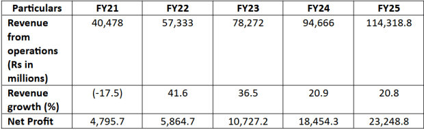 From FY21 to FY25, its revenue registered a CAGR of around 14%, while profit after tax grew at a much faster pace with a CAGR of nearly 38%.