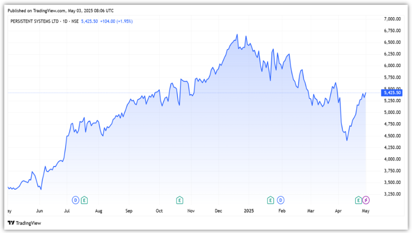 Despite a subdued demand environment across the broader sector, Persistent’s revenue increased 22% in FY25. EBITDA margins remained steady at around 17%. Net profit rose at a 32% CAGR to ₹14.0 billion in FY25, marking a 28% jump from FY24. EBITDA stands for earnings before interest, tax, depreciation, and amortization.