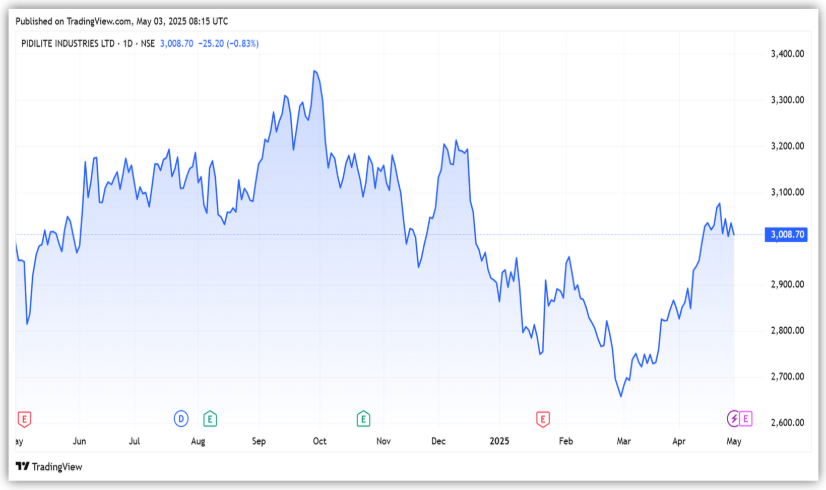 From a valuation perspective, Pidlite trades at a P/E of 76x, about a 10% premium to the 10-year median PE of 69. Motilal Oswal has a neutral rating on the stock and a target price of ₹2,950 per share, indicating limited upside from current levels.