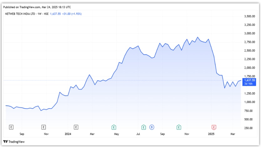 Netweb’s share price rose 233% from ₹898 in July 2023 to ₹3,060 in December 2024, while Anant Raj returned 373% from ₹200 in July 2023 to ₹947 in January this year. However, when the release of Deepseek triggered concerns around demand for hardware growth, share prices of AI related stock fell sharply.