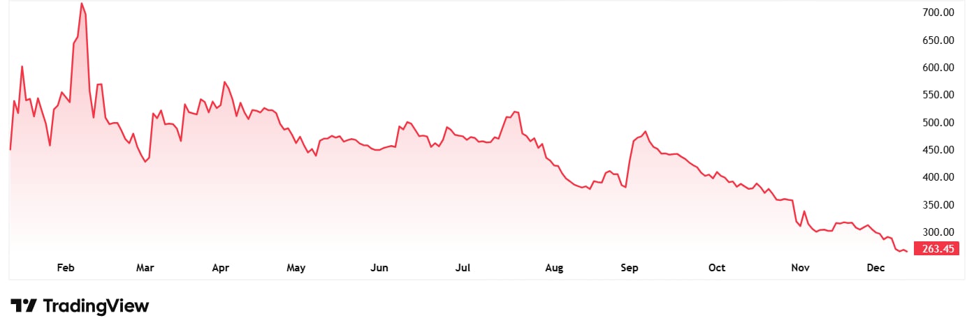 The share price of Quadrant Future Tek Ltd was around Rs 444 when listed in January 2025 and as on 11th December 2025 it was Rs 263, which is a big drop.