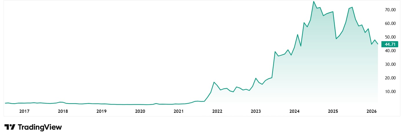 The share price of Lloyds Engineering Works Ltd was around Rs 1 in March 2021 and as of closing on 7th March 2026 it was Rs 46, which is a 4,500% jump in 5 years.