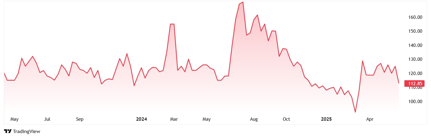 The share price of Sotac Pharmaceuticals Ltd was around Rs 120 when it was listed in April 2020 and as of closing on 19th June 2025 it was Rs 113, which is a small drop. At the current price, the stock is trading at a discount of almost 45% from its all-time high price of Rs 203.
