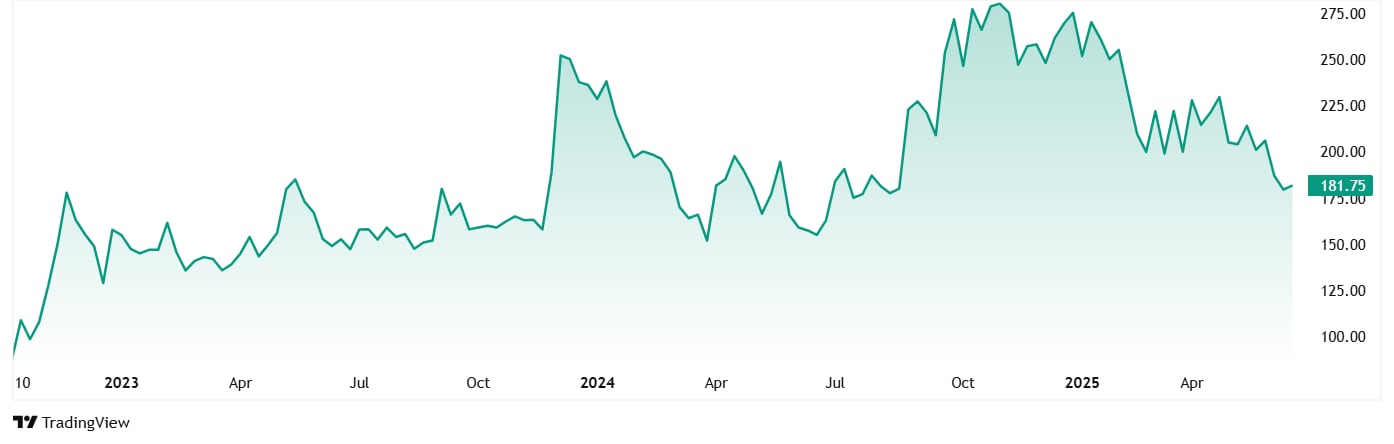 Silicon Rental Solutions share price was around Rs 87 when it was listed in October 2022, which has grown to its current price of Rs 182 (As of closing on 19th June 2025), which is a jump of 109
