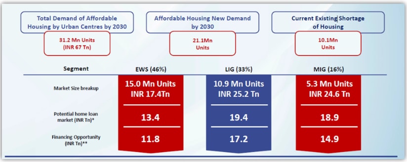 However, there remains a supply-demand imbalance, which currently stands at 10 million homes, which is expected to increase to 32 million by 2030. This gives banks and HFCs a potential financing opportunity of ₹45 trillion in the affordable housing sector, 3.5 times higher than the current loan volume of ₹13 trillion.