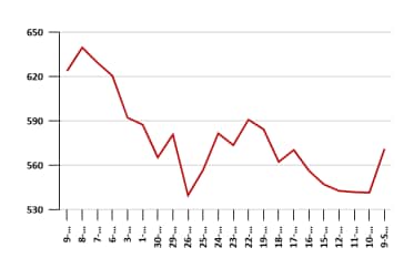 The stock touched its 52-week high of Rs 678.5 on 8 October 2025 and its 52-week low of Rs 287.3 on 7 May 2025.
