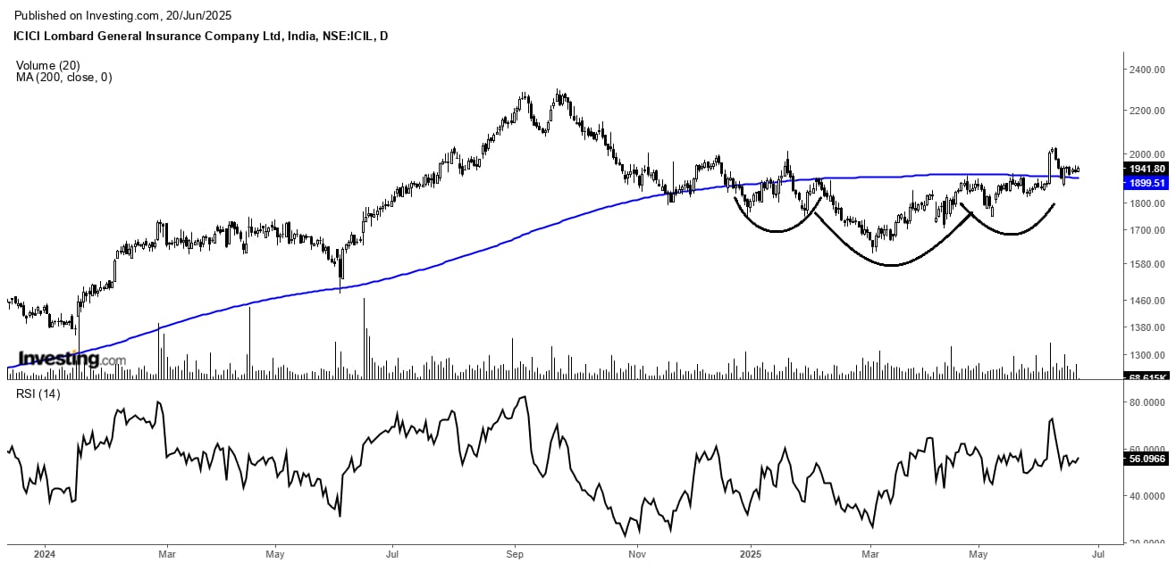 ICICI Lombard has been an underperformer, delivering a negative return of 30% from September 2024 to March 2025. Now, it has formed bullish reversal pattern, which is usually taken as a sign that a fresh rally could be starting. It has also gone above the 200-day moving average. The 14-period RSI shows strength and is in the bullish zone. This indicates ICICI Lombard could go on an upswing in the near future.