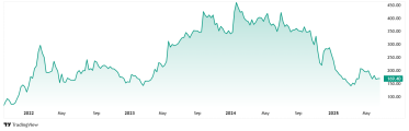 At the current price of 119, the stock is trading at a discount of 70% from its all-time high of Rs 399.