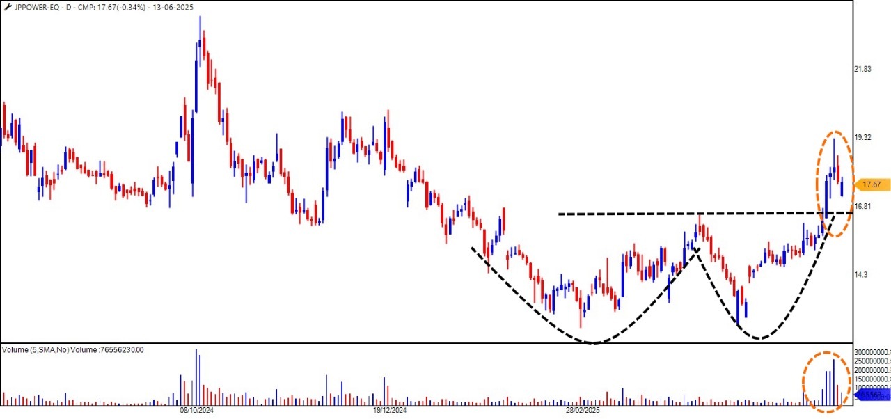 On the daily chart, JP Power has staged a breakout from a Double Bottom pattern, a classic bullish reversal signal. The formation of this base suggests that selling exhaustion is complete, and buyers may now be in control.