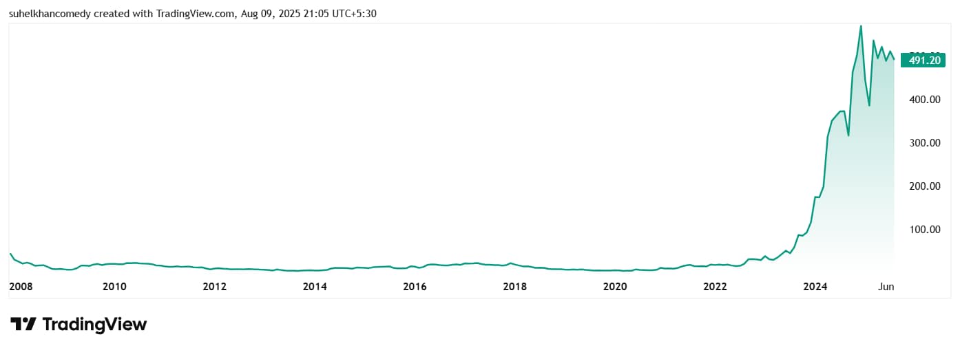 The share price of Transformers & Rectifiers India Limited have seen the effects of this strong growth and went from around Rs 5 in August 2020 to its current price of Rs 491 as of closing on 8th August 2025. That is a growth of an astounding 9,720% in just 5 years. Rs 1 lac invested in the stock 5 years ago would have turned to a little over Rs 98 lacs today.